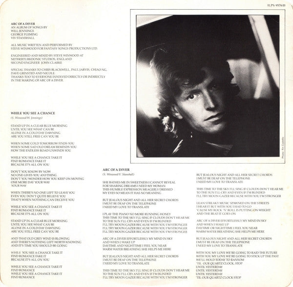 Descubre la magia del pop rock con el vinilo "Arc Of A Diver" de Steve Winwood, lanzado en 1980. Este álbum es una obra maestra que destaca por la innovadora mezcla de sonidos y la habilidad de Winwood para combinar ritmos pegajosos con letras introspectivas. Con éxitos como "While You See a Chance" y "Arc of a Diver," el álbum muestra la destreza musical de Winwood y su capacidad para crear canciones que resuenan tanto en la pista de baile como en la reflexión personal.