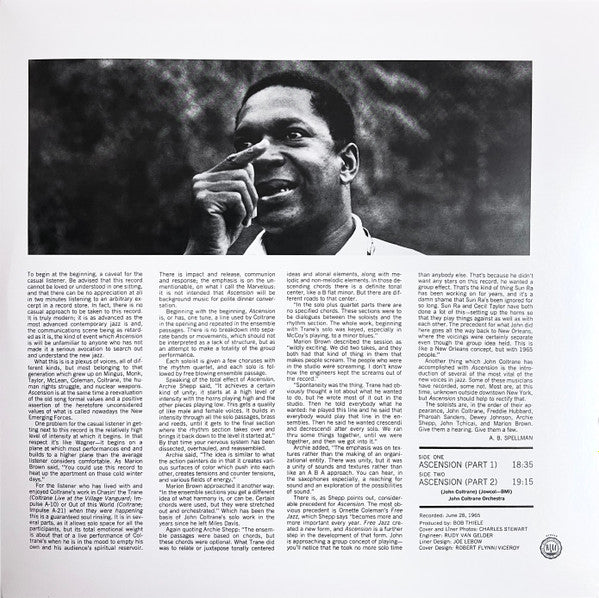 Descubre la intensidad y la innovación del jazz con este vinilo de "Ascension" de John Coltrane. Una pieza imprescindible para los amantes de la música que buscan una experiencia sonora profunda y envolvente. Este vinilo captura la esencia revolucionaria de Coltrane, ideal para quienes aprecian la calidad y la autenticidad en cada nota. Añade a tu colección un clásico que transforma cualquier espacio en un santuario musical.