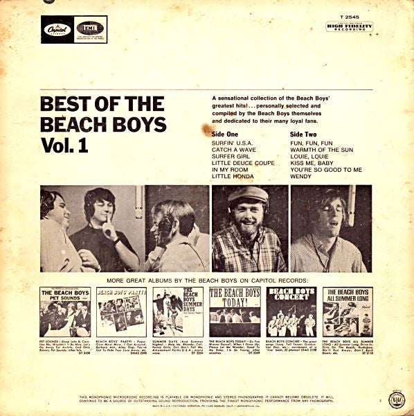 Compra el vinilo Best Of The Beach Boys - Vol. 1, una recopilación icónica de los mayores éxitos de The Beach Boys. Perfecto para coleccionistas y amantes del pop clásico en un formato de alta calidad. ¡Añádelo a tu colección hoy mismo!