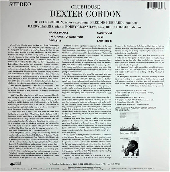 El vinilo "Clubhouse" de Dexter Gordon es un must-have para los amantes del jazz. Escucha al legendario saxofonista en su mejor momento, con un sonido que te transportará a los clubes de jazz de antaño. ¡Hazte con él ahora y siente la pasión y energía de la música de Gordon en cada nota!