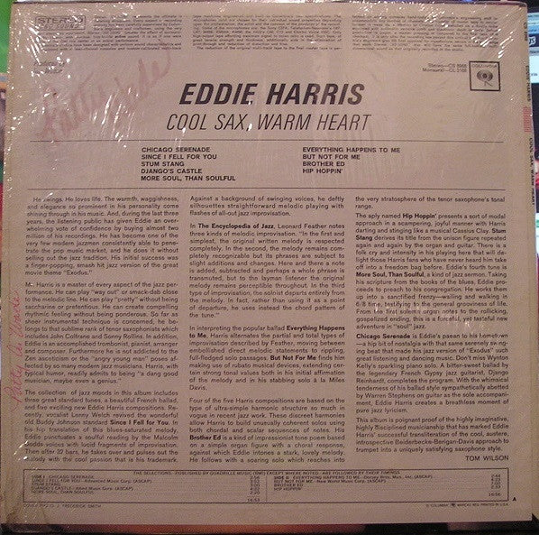 Un álbum que encapsula la maestría de Eddie Harris en el saxofón, combinando su distintivo estilo de jazz con influencias de soul y blues. "Cool Sax Warm Heart" presenta interpretaciones llenas de sofisticación y calidez emocional, mostrando la capacidad única de Harris para conectar con el oyente a través de melodías envolventes y ritmos cautivadores. Perfecto para los amantes del jazz que buscan una experiencia sonora única y vibrante.