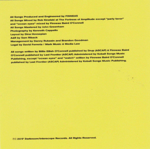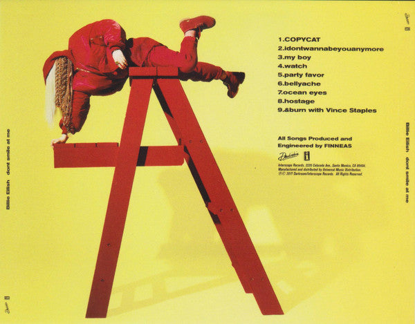 Adéntrate en el innovador mundo musical de Billie Eilish con su aclamado EP "Don't Smile At Me", lanzado en 2017. Este álbum marcó el inicio de su meteórica carrera y presenta una fusión única de pop alternativo, electropop, y R&B, caracterizada por letras introspectivas y una producción minimalista. Con éxitos como "Bellyache", "idontwannabeyouanymore", y "watch" (que destaca su inconfundible estilo vocal y emocional), este EP ha resonado profundamente entre los jóvenes de todo el mundo.