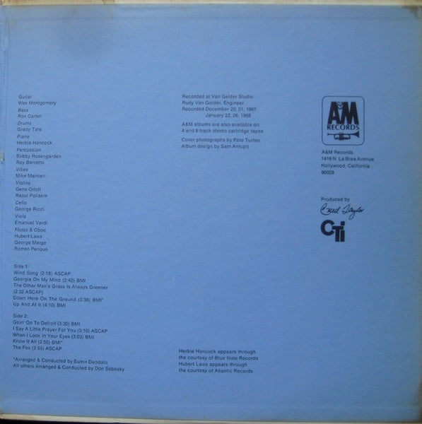 Sumérgete en la sofisticación del jazz y el soul con el vinilo "Down Here on the Ground" de Wes Montgomery, lanzado en 1968. Este álbum muestra a Montgomery en su faceta más melódica y accesible, combinando su inigualable técnica de guitarra con arreglos orquestales que realzan su estilo distintivo. Con su adaptación del tema de la película "El Caso de Thomas Crown" y otras piezas llenas de alma, este disco es una joya para los amantes del jazz suave y el groove relajado.