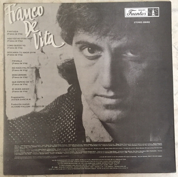 Sumérgete en "Fantasia," el aclamado álbum de Franco De Vita lanzado en 1984, que refleja el talento del cantautor venezolano para combinar melodías pop con letras conmovedoras. Este vinilo captura la esencia de la música pop latina de los años 80, ofreciendo una experiencia auditiva rica y envolvente con una producción de alta calidad que resalta la voz distintiva y la habilidad musical de De Vita.