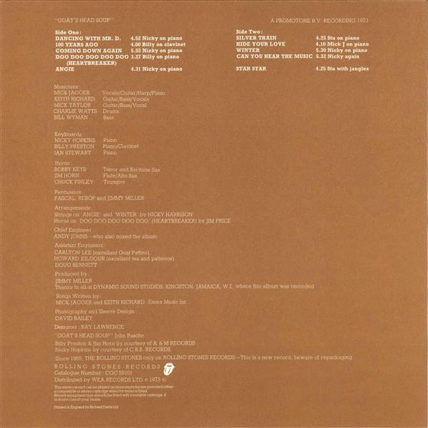 Revive la magia de los años 70 con "Goat's Head Soup," uno de los álbumes más emblemáticos de The Rolling Stones, lanzado en 1973. Este disco captura a la banda en un momento de transición, fusionando rock, blues y baladas con un sonido crudo y auténtico. Con éxitos como "Angie," "Doo Doo Doo Doo Doo (Heartbreaker)" y "Dancing with Mr. D," este álbum es esencial para cualquier amante del rock clásico.