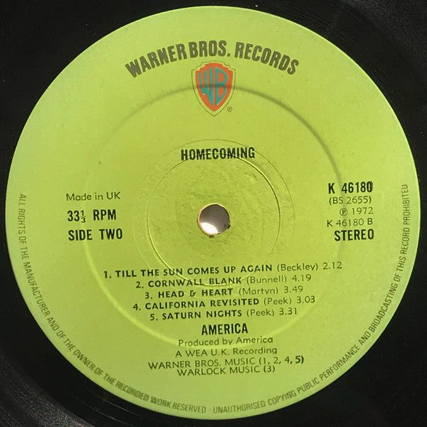 "Homecoming" es el segundo álbum de la icónica banda de rock folk America, lanzado en 1972. Este disco incluye su emblemático éxito "Ventura Highway" junto con otras melodías suaves y poéticas que capturan la esencia del estilo acústico de los 70. Con armonías vocales exquisitas y arreglos musicales impecables, "Homecoming" solidificó la posición de la banda como uno de los pilares del folk rock estadounidense.
