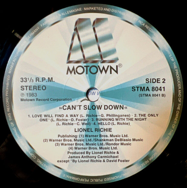 Revive los vibrantes ritmos y melodías del pop y R&B con el vinilo "Can't Slow Down" de Lionel Richie. Lanzado en 1983, este álbum es un hito en la carrera de Richie, conocido por su combinación perfecta de suaves baladas y ritmos contagiosos. Con éxitos como “All Night Long (All Night)” y “Hello,” "Can't Slow Down" captura la esencia del sonido pop de los años 80, mostrando el talento vocal y la habilidad compositiva de Richie en su máxima expresión.