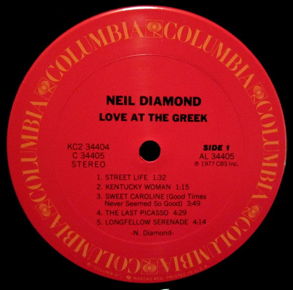 Este vinilo presenta Love at the Greek, un álbum en vivo de Neil Diamond grabado en el legendario Greek Theatre. Con actuaciones poderosas de sus grandes éxitos como "Sweet Caroline" y "Song Sung Blue," el disco captura la conexión única de Diamond con su audiencia. Ideal para los fanáticos del pop y rock clásico, es una adición esencial para cualquier colección de vinilos en vivo.