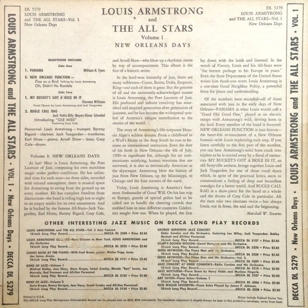 El álbum New Orleans Days reúne a Louis Armstrong y su grupo All Stars en una celebración vibrante del jazz tradicional y las raíces musicales de Nueva Orleans. Con su característica trompeta y carismática voz, Armstrong lidera interpretaciones memorables de estándares clásicos, transportando al oyente al corazón de la cuna del jazz.