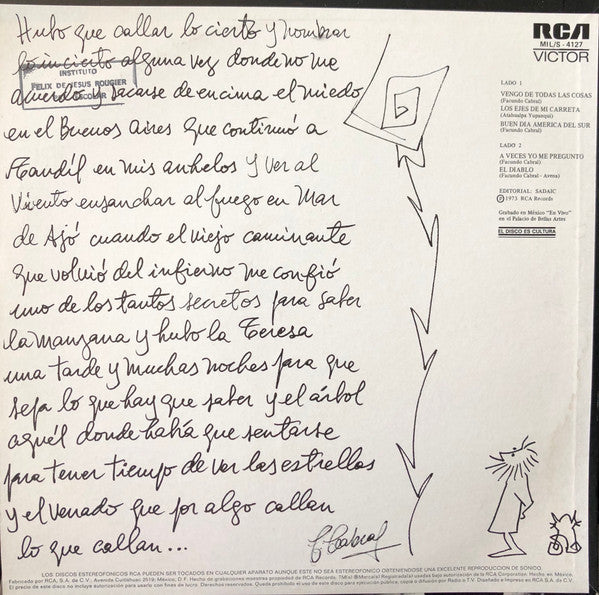 Descubre la esencia de Facundo Cabral en "(En Vivo) Palacio De Bellas Artes Vol. I", un álbum que captura la profunda conexión del artista con su público. Ideal para quienes buscan una experiencia musical auténtica y reflexiva, este vinilo es una joya que no puede faltar en la colección de los amantes de la música y la poesía. ¡Sumérgete en el legado de Cabral y disfruta de su arte en su máxima expresión!