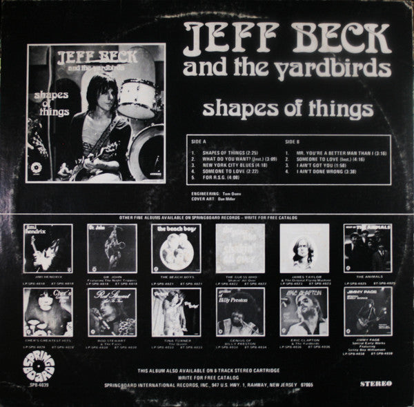 "Shapes of Things" es una de las canciones más icónicas de The Yardbirds, destacando la guitarra innovadora de Jeff Beck. Lanzada en 1966, la canción combina elementos de rock psicodélico y blues, con una estructura experimental que anticipó muchos de los desarrollos musicales de los años 60 y 70. Con riffs complejos y un uso pionero de efectos de guitarra, como el uso de la distorsión y el feedback, esta pieza marcó un hito en la historia del rock y fue influyente para futuras generaciones de músicos. Shapes of Things refleja el cambio hacia un sonido más vanguardista y experimental en la música británica de la época.