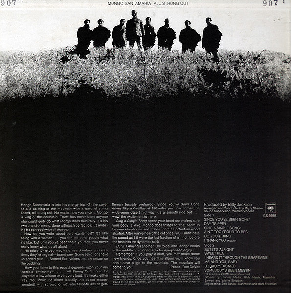 All Strung Out es un álbum vibrante del legendario percusionista Mongo Santamaria, que combina ritmos afro-cubanos con elementos de soul y jazz. Este disco presenta composiciones llenas de energía, complejos arreglos de percusión y una fusión única de estilos. Ideal para los amantes del jazz latino y la música que hace mover el cuerpo.