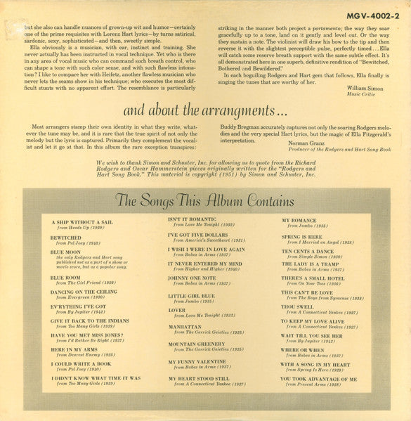 En este álbum icónico, Ella Fitzgerald presta su inigualable voz al legendario dúo de compositores Richard Rodgers y Lorenz Hart. Ella Fitzgerald Sings The Rodgers And Hart Song Book es un despliegue magistral de jazz vocal, donde temas inmortales como "My Funny Valentine" y "The Lady Is a Tramp" se convierten en joyas gracias a la interpretación elegante y emotiva de Fitzgerald. Este vinilo es un tributo esencial a dos gigantes de la composición y una de las voces más exquisitas del jazz.