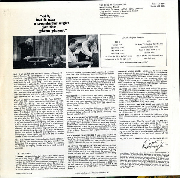 Este vinilo único captura la magia de Duke Ellington junto a la Boston Pops bajo la dirección de Arthur Fiedler. Con interpretaciones icónicas de jazz y música orquestal, es una pieza esencial para coleccionistas y amantes del jazz clásico. Perfecto para disfrutar en tocadiscos y enriquecer tu colección de discos vintage.