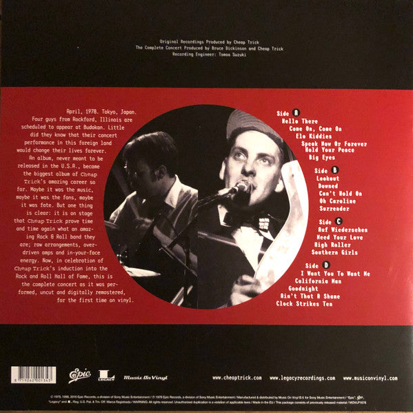 At Budokan: The Complete Concert es una edición especial en vinilo del icónico álbum en vivo de Cheap Trick, lanzado en 1979. Este concierto, grabado en el famoso Nippon Budokan en Tokio, es conocido por capturar la energía explosiva de la banda y por ser uno de los mejores registros de rock en vivo de todos los tiempos. Incluye éxitos como I Want You to Want Me y Surrender, junto con otras interpretaciones de alto voltaje que reflejan la destreza en el escenario de Cheap Trick. Esta edición completa ofrece una experiencia auditiva más profunda, sumergiéndote en cada momento de la performance vibrante.
