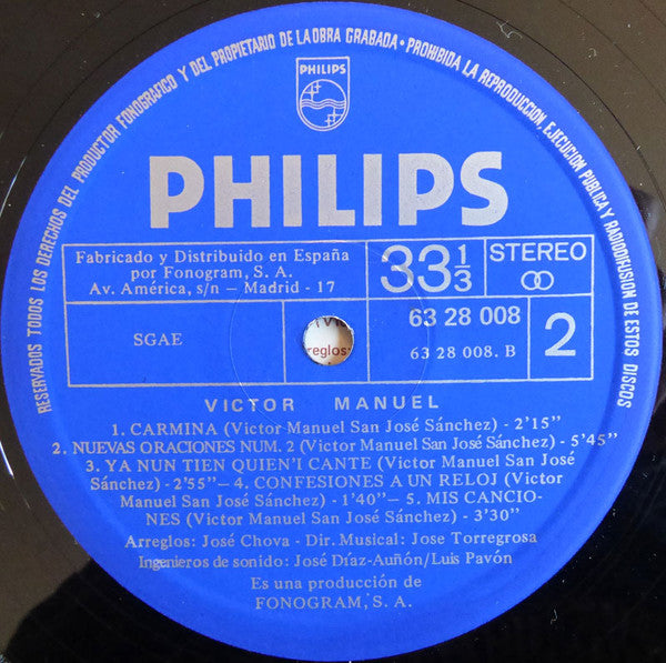 El álbum debut de Víctor Manuel ofrece una muestra de su talento único en la música latina. Con su estilo inconfundible, mezcla de balada y pop, este disco presenta canciones que han perdurado en la memoria de sus seguidores. Cada tema refleja su capacidad de conectar con el público a través de letras profundas y una interpretación apasionada.